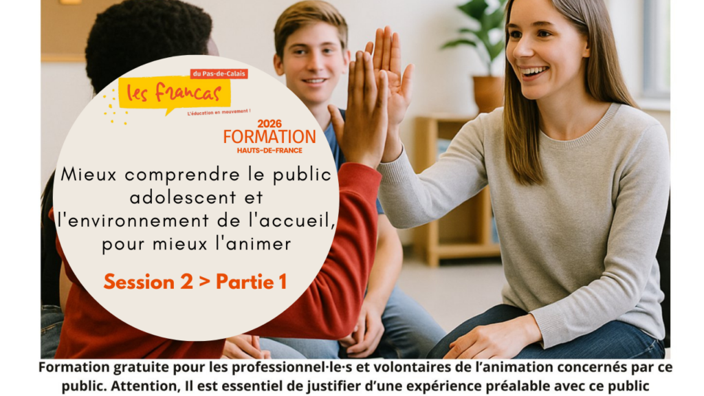 20 janvier 2026 @ 9h30 – 16h30 – 📣 Vous accompagnez des adolescents au quotidien ? Animateur.trice de structure jeunesse type CAJ ou ACM, Vous cherchez à mieux comprendre leurs comportements, leur environnement et à développer une posture éducative plus juste et efficace ? ➡️ Rejoignez notre module de formation complémentaire : « Mieux comprendre le public adolescent et l’environnement de l’accueil, pour […]